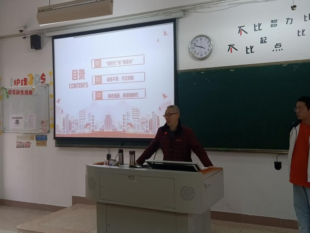 不知不覺,春天正邁著輕盈的腳步,悄悄地向我們走來,在這生機盎然的五月,我們迎來了又一個五四青年節。為了繼承和發揚五四運動以來中國優秀革命傳統,2022年5月4日,習近平新時代中國特色社會主義思想讀書社宣講團在胡濟林老師的組織下,到教學樓112為21影像501、檢驗501班開展線下宣講交流。我們期望通過面對面交流,向同學們宣傳普及黨的十九屆六中全會精神,不斷提升大學生的責任感、使命感和自豪感。