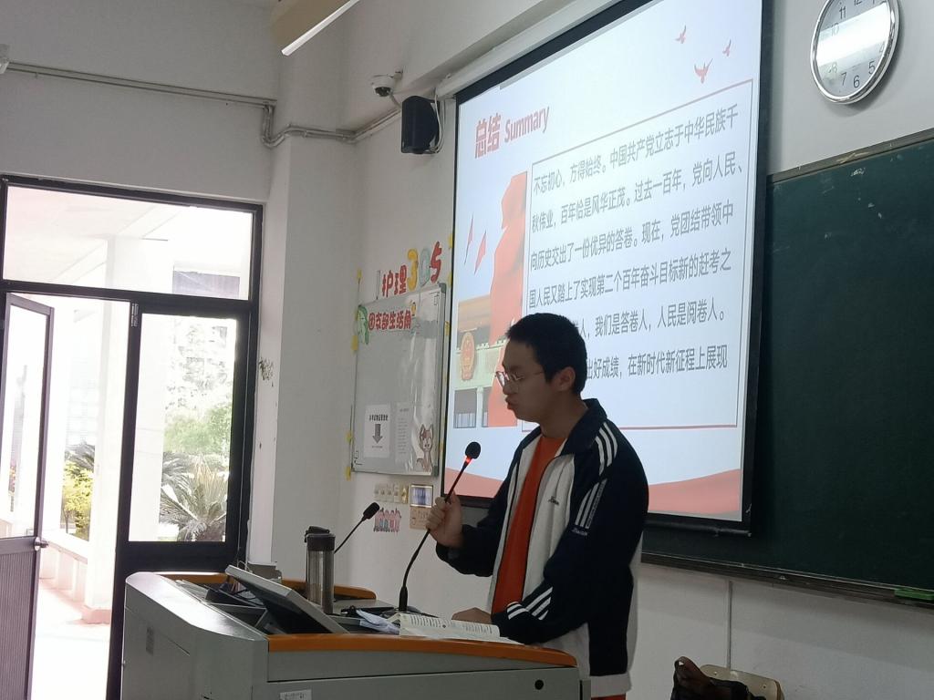 本次宣講人是屈立同學,宣講的主題是“學習黨史 奮進新時代”。屈立首先簡要介紹了黨的十九屆六中全會審議通過的《中共中央關于黨的百年奮斗重大成就和歷史經驗的決議》,他談到,作為新時代的青年,我們要積極學習黨百年奮斗的光輝歷程與奮斗歷史,從黨的思想旗幟中找準方向,從黨的精神品格中汲取力量,不忘初心、牢記使命、永久奮斗,在新時代新征程上自覺擔當起黨的助手和后備軍的光榮責任,為實現中華民族偉大復興的中國夢而不懈奮斗。