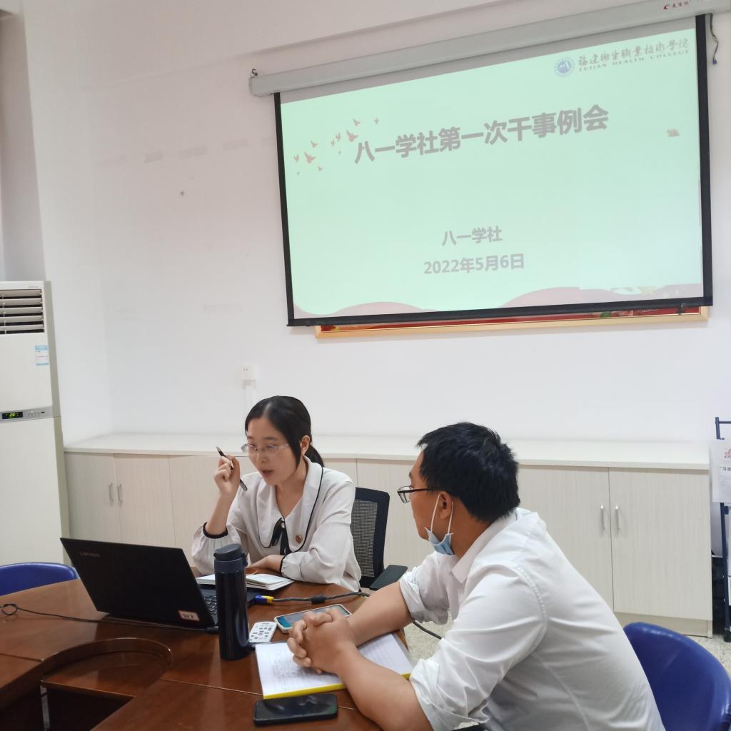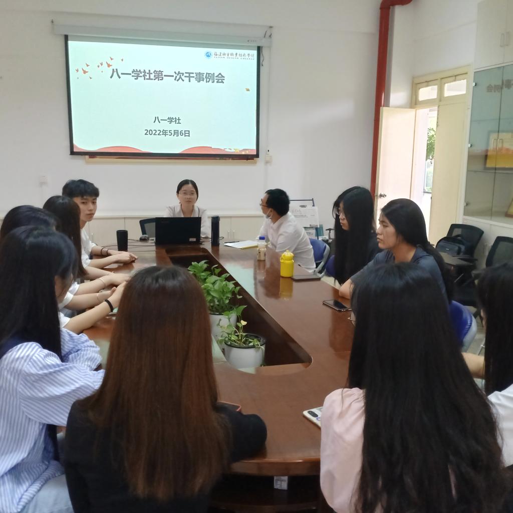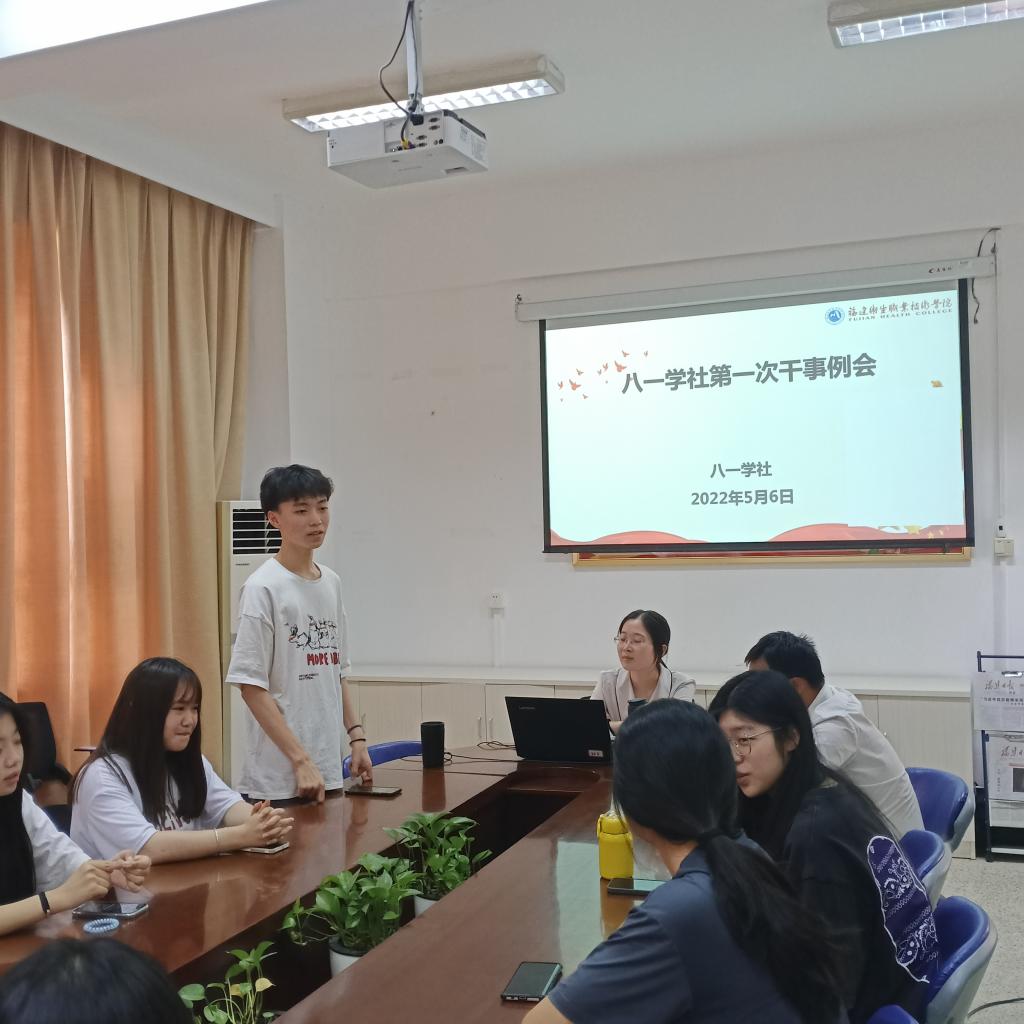 為提高八一學社工作效率,促進社團工作順利開展,2022年5月6日在行政樓107召開八一學社第一次干事例會,會議由社團指導老師楊央主持,指導老師張崇飛和八一學社全體新晉干事參加了此次會議。