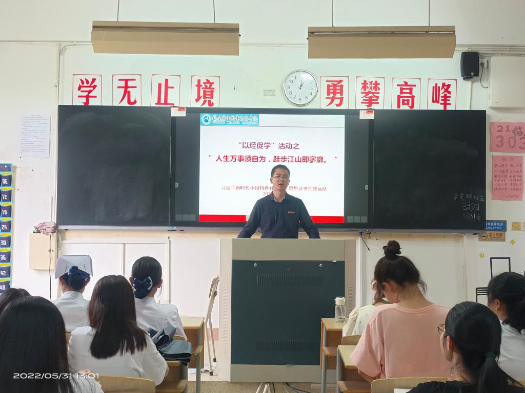 2022年5月31日下午,習(xí)近平新時代中國特色社會主義思想讀書社致遠(yuǎn)隊在江洪老師的組織下在教學(xué)樓102教室開展“‘以經(jīng)促學(xué)’之‘人生萬事須自為,跬步江山即寥廓’”社團(tuán)活動,社團(tuán)成員們都按時參加了此次活動。