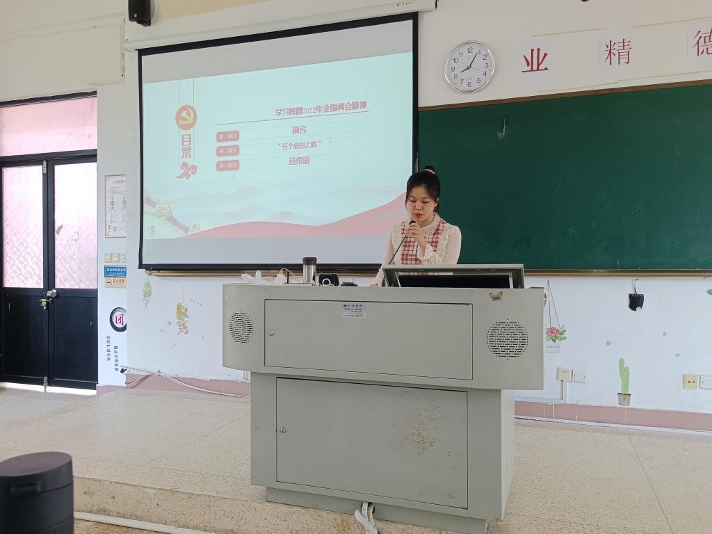活動開始,由宣講人王佳瑤同學進行“五個必由之路”背景的講解,接著講述了習近平總書記論述的“五個必由之路”,即堅持黨的全面領導是堅持和發展中國特色社會主義的必由之路;中國特色社會主義是實現中華民族偉大復興的必由之路;團結奮斗是中國人民創造歷史偉業的必由之路;貫徹新發展理念是新時代我國發展壯大的必由之路;全面從嚴治黨是黨永葆生機活力、走好新的趕考之路的必由之路。王佳瑤說:“‘五個必由之路’,為我們奮進新征程再創新輝煌指明了方向,要堅持黨的全面領導,只有在中國共產黨的領導下,我們才能奪取新時代中國特色社會主義的新勝利,向著全面建成社會主義現代化強國穩步邁進。”