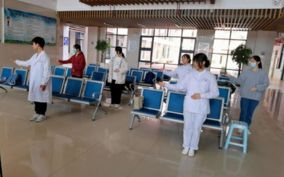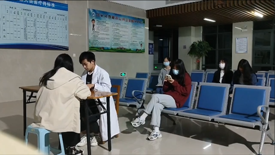 江洪還組織同學們開展了醫學禮儀訓練。首先由3名成員情景模擬某社區醫院某醫生、護士的診療、服務過程。隨后,其他觀摩成員通過觀摩,尋找在角色扮演中醫生、護士出現的不合醫學禮儀的行為,并運用自己所學的醫學禮儀知識糾正錯誤。最后,同學們展示了語言禮儀、穿戴禮儀、坐姿、站姿、蹲姿等五個方面的基本的醫學禮儀。