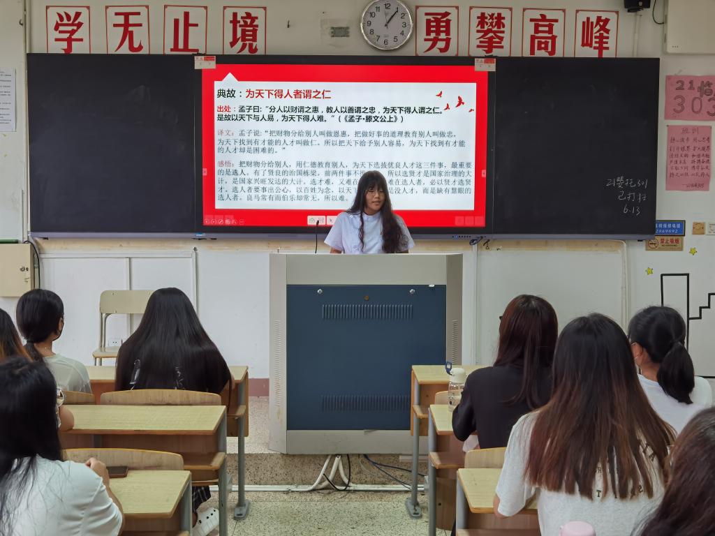 活動伊始,由致遠隊隊長陳曉萍同學為我們講解習近平總書記近日發表的重要文章《堅定不移走中國人權發展道路,更好推動我國人權事業發展》中所引用的典故,包括“古之為政,愛人為大”“為天下得人者謂之仁”“天生萬物,唯人為貴”“濟大事者,必以人為本”“治天下者,以人為本”等經典,深入闡述了中國傳統文化以民為本的重要精神和中國共產黨始終堅持以人為本、全心全意為人民服務的寶貴品格。