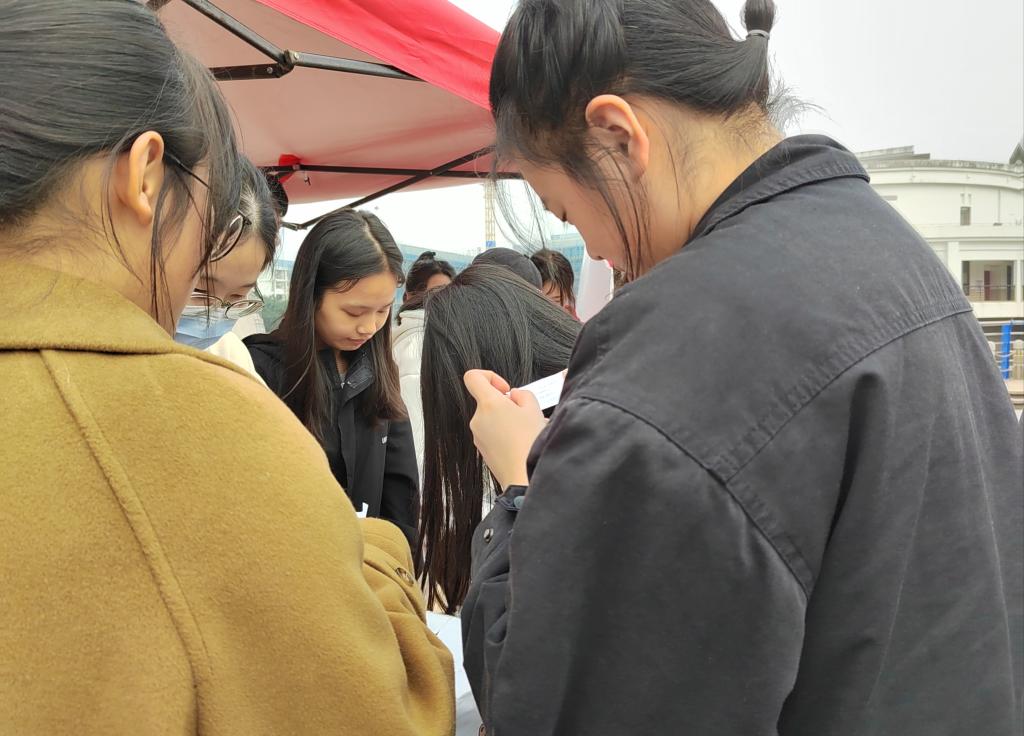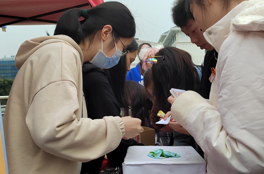 在社團游園會中,習近平新時代中國特色社會主義思想讀書社結合自身特色舉辦了知識競賽活動,現場還準備了飽含寓意的小禮品。同學們積極踴躍地參與知識競賽,現場氣氛相當熱烈。大家在收獲知識的同時,還收獲了滿滿的快樂。