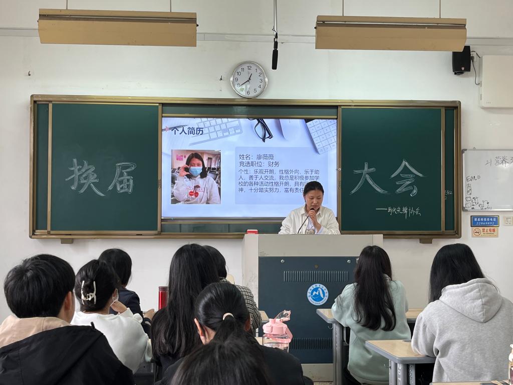 2023年4月6日,時代先鋒協會社團換屆大會在教學樓201教室順利舉行。本次會議采取了線上線下同時進行的方式。出席本次會議的有社團指導老師丁愛芝、陳洪月、社團干事、換屆競選人員以及各社團代表。會議由社長鄧依婷主持。