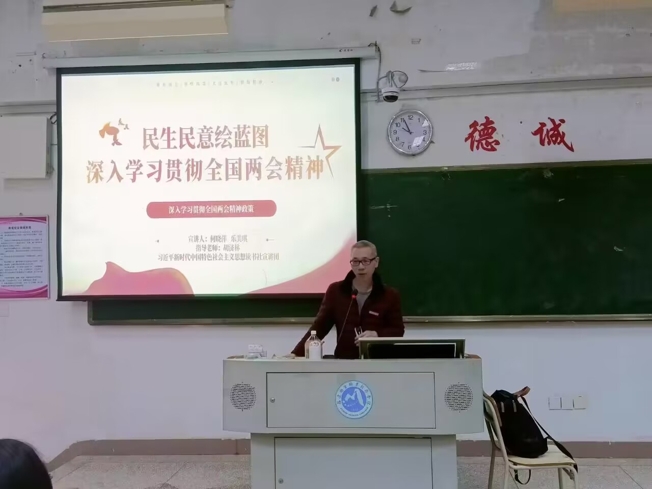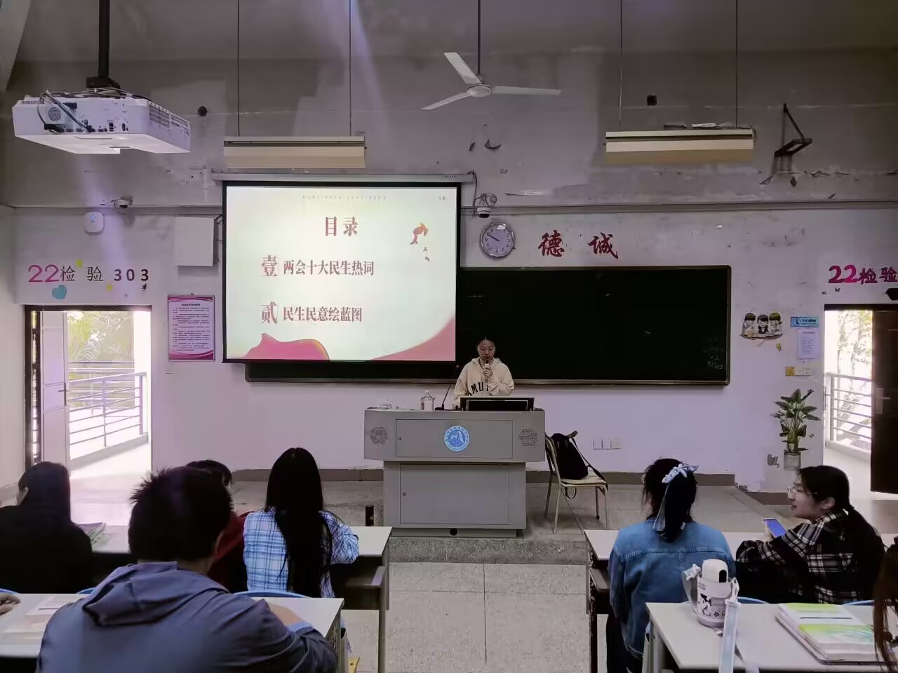 今年的全國兩會全面貫徹黨的二十大精神,在開局之年把中國式現代化的宏偉藍圖轉化為具體奮斗目標,切實解決百姓關心的急難愁盼和熱點問題,通過發展不斷提升民生福祉。為了更好地帶領同學們學習全國兩會精神,2023年4月11日,習近平新時代中國特色社會主義思想讀書宣講團成員在胡濟林老師組織下,在醫學技術樓212階梯教室為19美容501班、19衛管501班、19智能醫療裝備501班開展線下宣講交流。