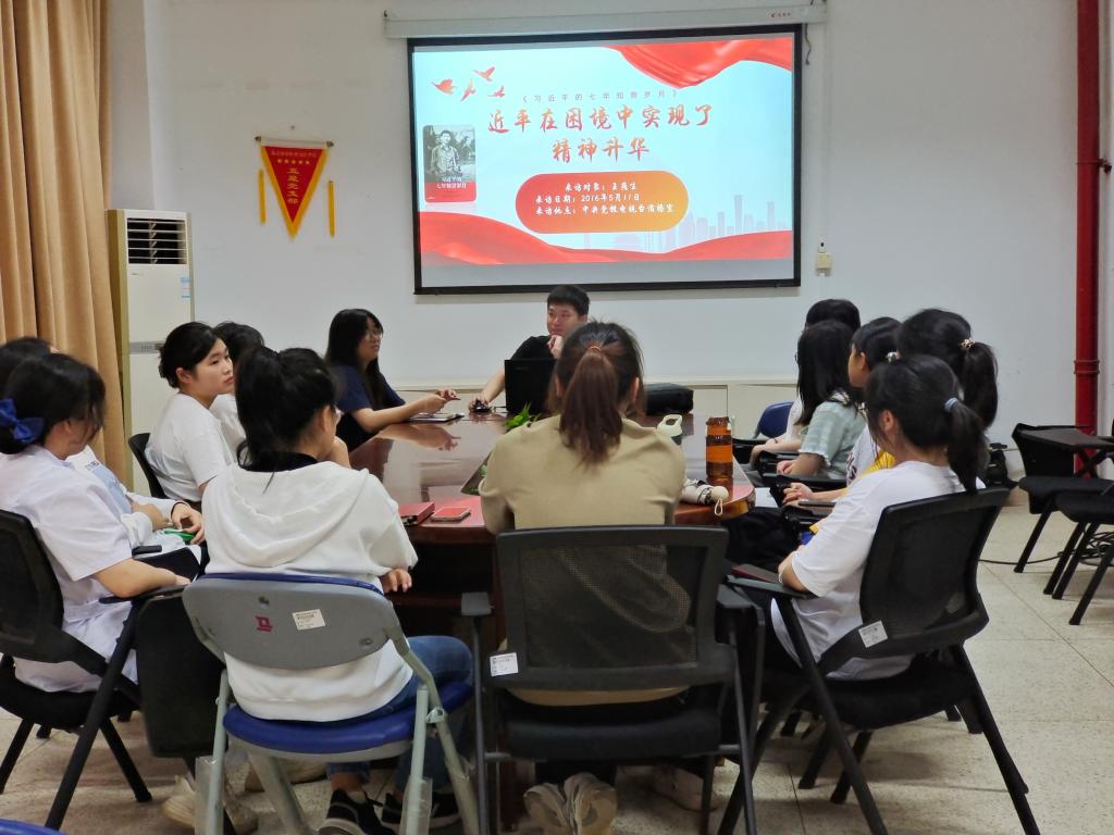 2023年5月4日,習(xí)近平新時(shí)代中國特色社會(huì)主義思想讀書社原夢隊(duì)在行政樓101開展《習(xí)近平的七年知青歲月》讀書匯報(bào)。指導(dǎo)老師羅蕓和原夢隊(duì)全體社員參加了此次活動(dòng)。
