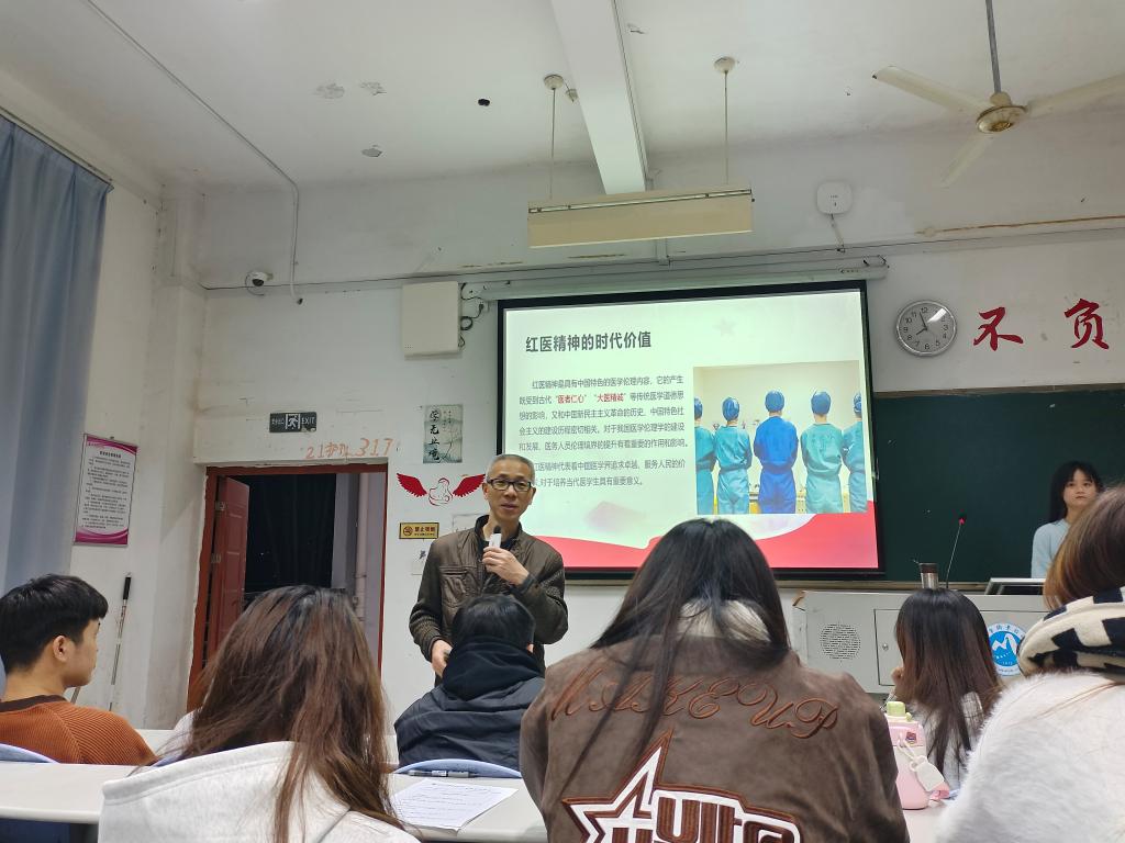 紅色基因是我們黨帶領人民在百年奮斗歷程中形成的先進思想因子的結晶,是百年以來中國人民的精神特質,是黨性與人民性、民族性與時代性、先進性與開放性的高度統一。為了更好地傳承紅色基因,2023年11月20日,習近平新時代中國特色社會主義思想讀書社宣講團成員在胡濟林老師的組織下,到護理一階給同學們開展“賡續紅色血脈 奮進偉大時代”系列宣講活動之“傳承紅色基因 弘揚時代新帆”專題宣講。