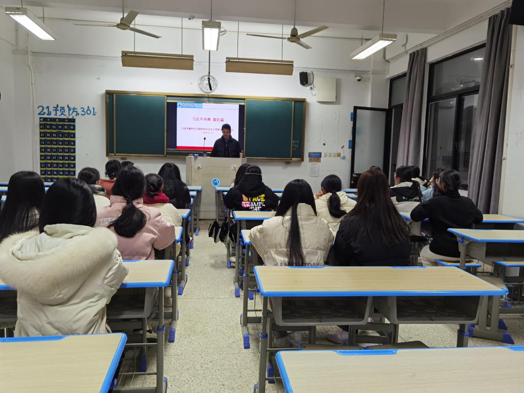 為更好地學(xué)習(xí)習(xí)近平新時(shí)代中國(guó)特色社會(huì)主義思想,傳承中華優(yōu)秀傳統(tǒng)文化,2024年2月27日,習(xí)近平新時(shí)代中國(guó)特色社會(huì)主義思想讀書社社團(tuán)選修課《習(xí)近平用典》開講第一講“敬民篇”,由江洪老師負(fù)責(zé)主講,社團(tuán)選課學(xué)生按時(shí)參加了學(xué)習(xí)。