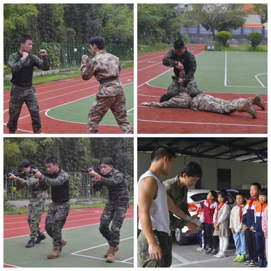 接著,八一學社與國旗護衛(wèi)隊一行來到操場,活動進入到實踐展示環(huán)節(jié)。由八一學社3名退役大學生進行擒敵、倒功、軍事戰(zhàn)術(shù)動作展示等軍事技能幫教互動,以及戰(zhàn)場快速包扎急救互救。其中,軍事技能的展示引起在場小學生們熱烈鼓掌,在他們心中樹立了崇高軍人形象。而戰(zhàn)傷救護是作為醫(yī)學生們履行職責、保障患者生命安全的體現(xiàn)。