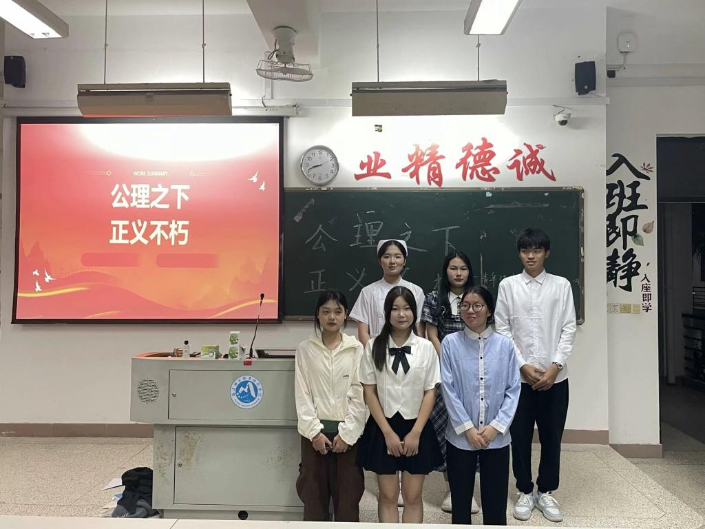 為提升閩衛院學子法律意識與法治思維能力,在校園內積極營造出尊法學法守法用法的良好氛圍,2024年6月6日,青年法學社在教學樓209開展“公理之下正義不朽”PPT演講比賽決賽。本次決賽由馬克思主義學院鄭冰老師、鄒亞彤老師以及三位社團負責人擔任評委。