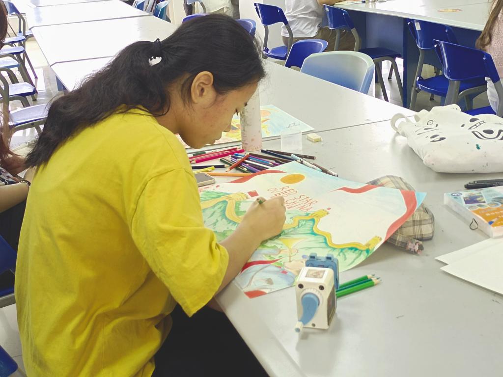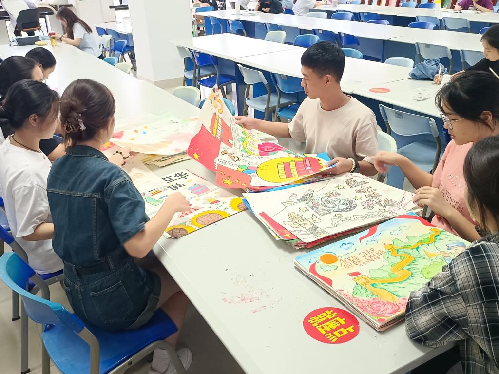 夏日午后,金色陽光撒滿圖書館四樓的大廳。大廳里只聽得到同學們在紙上沙沙作畫的聲音,他們畫出了七十五年來祖國所經歷的風雨,畫出了祖國當下的盛世繁華,畫出了祖國未來開創的輝煌篇章。在一幅幅優美的畫卷下,征集活動艱難評選出一、二、三等獎。