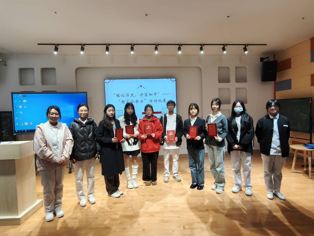2024年12月12日,時(shí)代先鋒協(xié)會(huì)于師生活動(dòng)中心合唱室舉辦以“銘記歷史,守望和平”為主題的國家公祭日演講比賽,馬克思主義學(xué)院丁愛芝老師、張晨琳老師及社團(tuán)負(fù)責(zé)人擔(dān)任評(píng)委。