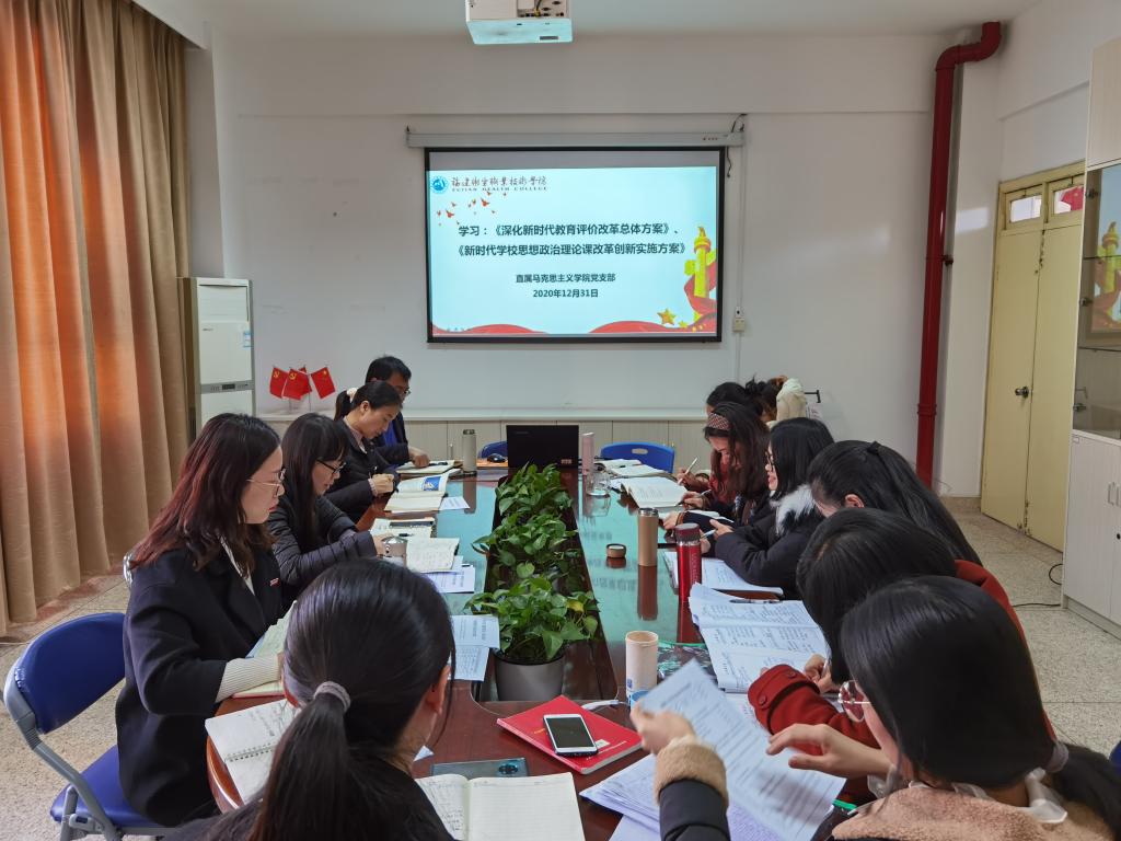 會(huì)上,黨支部書(shū)記熊美蘭首先將直屬馬克思主義學(xué)院黨支部委員候選人預(yù)備人選初步名單再次提交黨員大會(huì),進(jìn)一步征求黨員意見(jiàn),全體黨員同志一致同意初步名單。隨后,在直屬馬院黨支部副書(shū)記來(lái)朋珍的領(lǐng)學(xué)下,大學(xué)一起深入學(xué)習(xí)了《深化新時(shí)代教育評(píng)價(jià)改革總體方案》、《新時(shí)代學(xué)校思想政治理論課改革創(chuàng)新實(shí)施方案》文件精神。