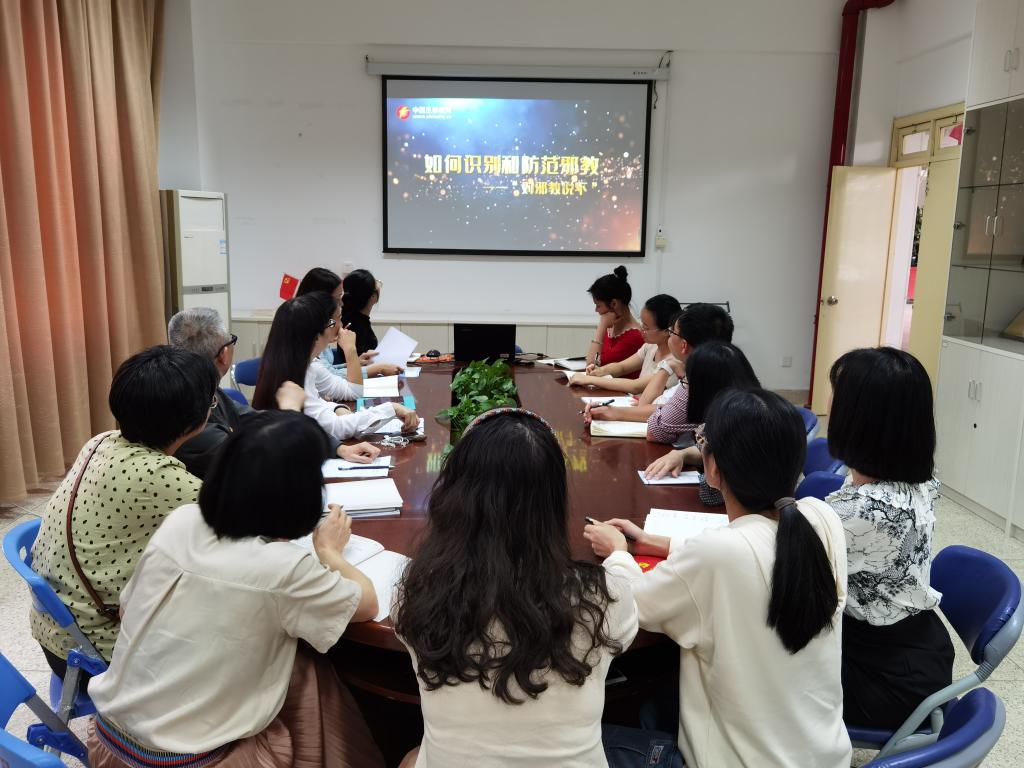 最后,支部書記熊美蘭強調,要認清邪教的本質,在思想上筑起防線,堅決抵制邪教;對邪教的各類宣傳,要做到不聽、不信、不傳;如發現邪教組織活動,要積極向公安機關舉報;要積極在學生中開展反邪教教育宣傳活動,充分發揮課堂主陣地的作用。