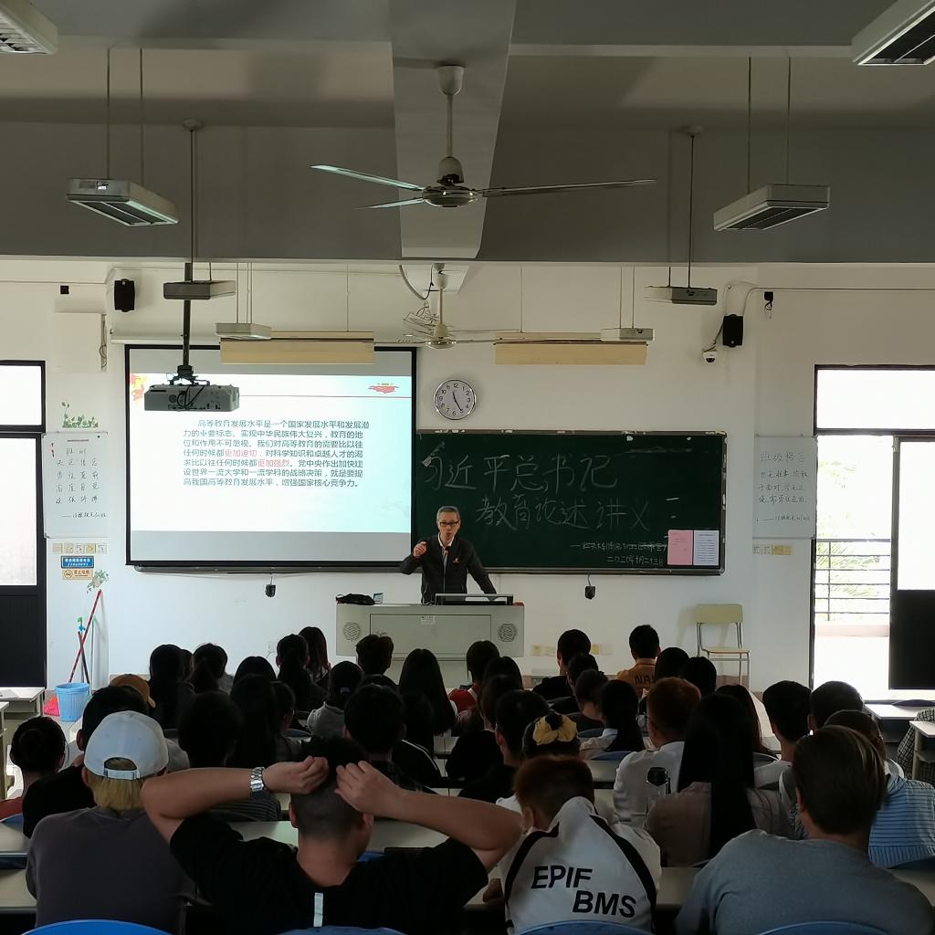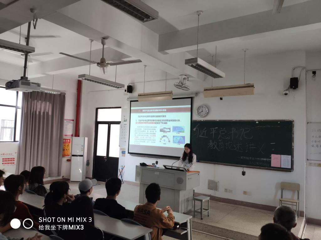 接著,胡濟林老師給同學們作了《解讀習近平總書記教育思想》的報告。胡老師從教育強則國家強、高校立身之本在于立德樹人、對當代高校學生充分信任、寄予厚望等三個方面解讀了習近平總書記教育思想。胡老師講課旁征博引,形象生動,他指出,習近平總書記教育思想內涵豐富,思想深邃,今天的講解只是一個開端,今后還要多組織類似的活動,胡老師希望同學們牢記習近平總書記的諄諄教導,將理論學習與自我成長結合起來,做一個有理想有本領有擔當的時代新人。