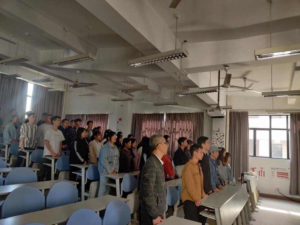 活動開始前,同學們都佩戴好團徽、校徽,著裝整齊,等待著團日活動的開始。活動伊始,同學們首先唱起來了雄壯的團歌。