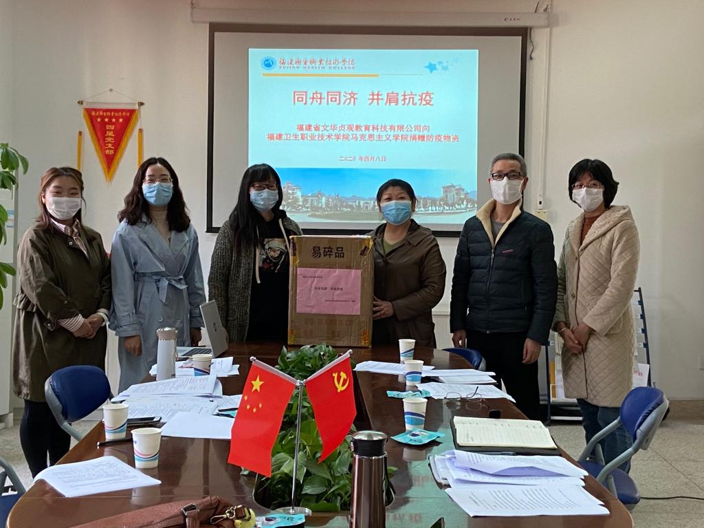 4月8日,福建省文華貞觀教育科技有限公司(簡稱“文華貞觀公司”)通過向馬克思主義學院捐贈1000個醫用口罩,助力馬院疫情防控工作。