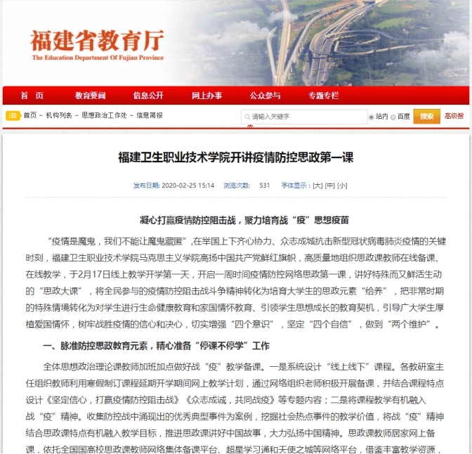 (福建省教育廳官網(wǎng)2020年2月25日 思想政治工作處-信息簡(jiǎn)報(bào)