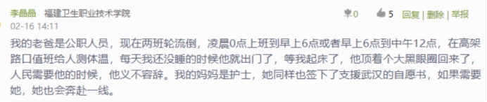 榜樣不僅在遠方,也在我們身邊。這次疫情,或許我們才發現我們的父母不僅屬于我們的,他們更是屬于人民的,更是屬于國家的。除了我們的父母,還有我們的學長學姐。