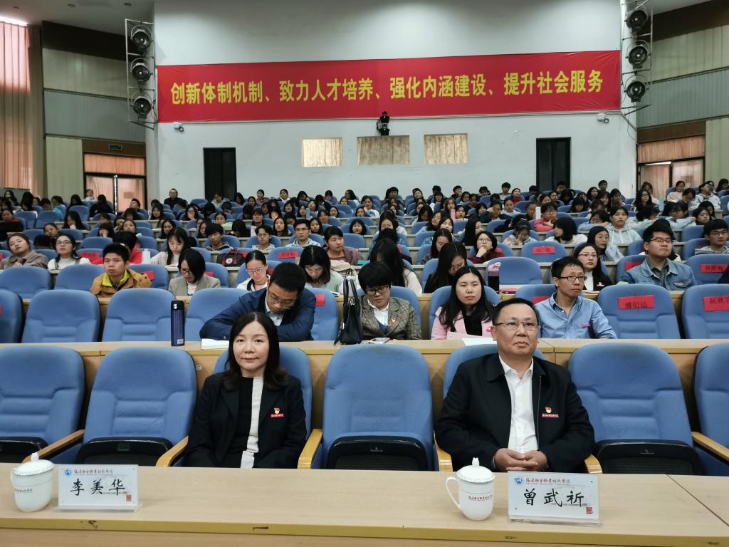 為深入開展“不忘初心、牢記使命”主題教育,增強我校師生的初心使命意識和勇于擔當作為的歷史責任感、使命感和緊迫感,2019年11月28日下午,我校“衛院之原”馬克思主義論壇在學術報告廳舉行。本次論壇邀請福建江夏學院馬克思主義學院院長郭健彪教授為我校師生“新時代中國的發展大戰略及當下面對的國際環境”專題講座。講座由校黨委書記曾武祈主持,校黨委副書記李美華、各系部黨總支書記、副書記、學工處主要領導、團委主要領導、全體輔導員、馬院全體教師、護理系學生代表、健康管理系學生代表及社團學生代表參加了此次活動。