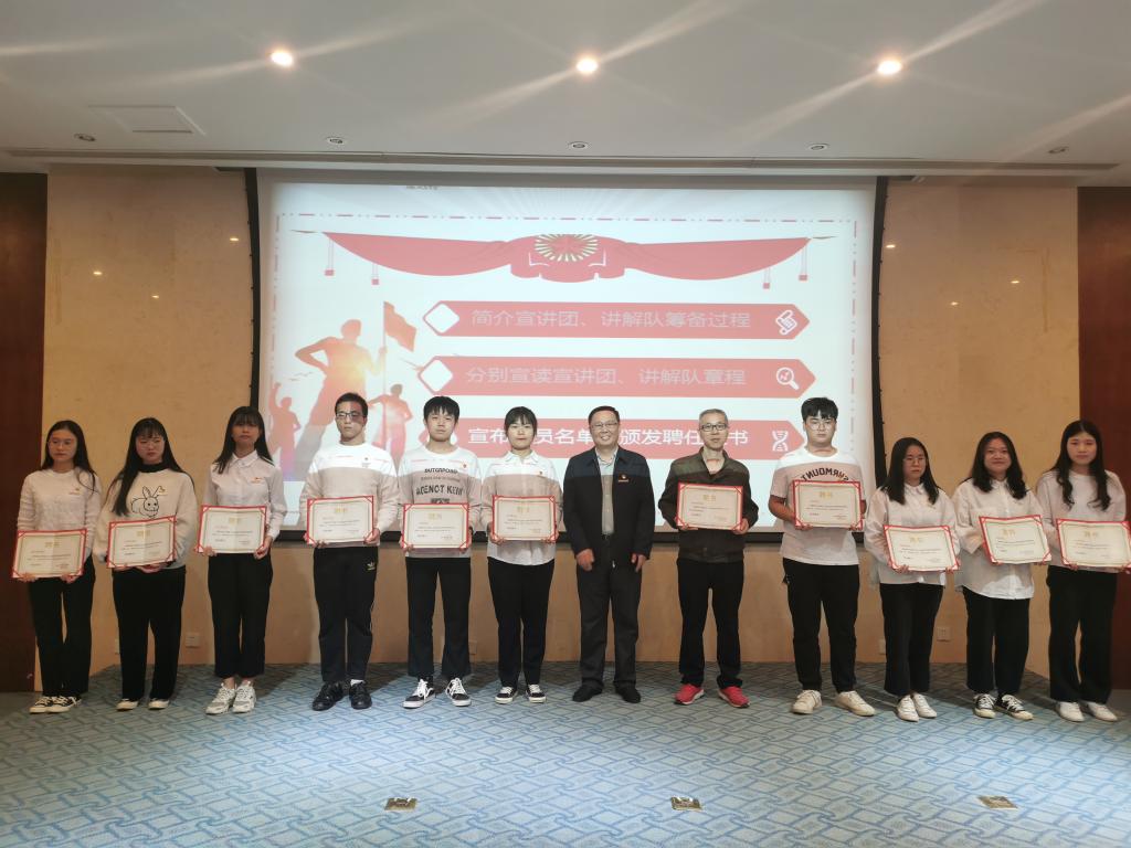 最后校黨委書記曾武祈分別為宣講團成員頒發聘書,他強調宣講團的成立將進一步推動我校習近平新時代中國特色社會主義思想的學習與宣傳,意義重大,希望同學們能夠更進一步深入基層了解我們的黨情、國情、社情,堅定信仰、錘煉意志、增長見識、學好本領,做好宣傳工作,更好地奉獻才干、服務社會。