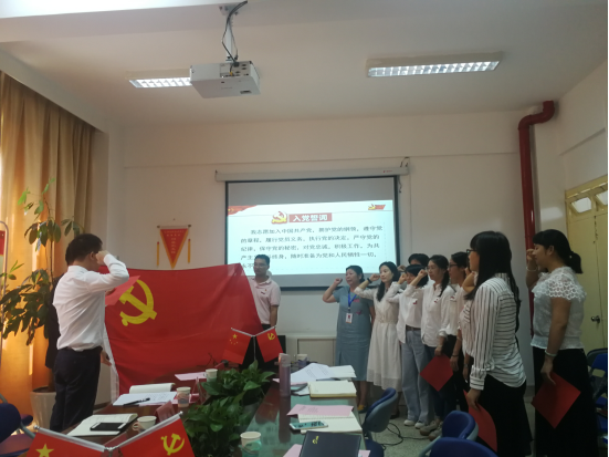 2019年10月17日上午,繼“不忘初心、牢記使命”主題教育黨課之后,直屬馬克思主義學院黨支部在行政樓107會議室開展全體黨員、全體思想政治理論課教師入黨及思想政治理論課教師宣誓儀式。儀式由直屬馬克思主義學院黨支部書記熊美蘭同志主持,黨工部部長、學院主題教育巡回指導小組成員吳華同志出席,馬克思主義學院院長、直屬馬克思主義學院黨支部書記熊美蘭同志主持,直屬馬克思主義學院黨支部全體教師黨員參加了本次活動。院直機關黨總支第一黨支部書記黃曦同志,院直機關黨總支第二黨支部書記魏鶯同志,院直機關黨總支第三黨支部書記葉文偉同志,院直機關黨總支第四黨支部書記宋維同志,臨床醫學系第二黨支部高長花同志前來觀摩學習。