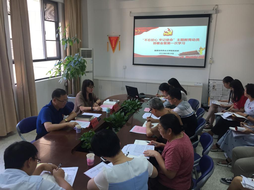 9月19日下午,直屬馬克思主義學院黨支部在行政樓107會議室召開“不忘初心、牢記使命”主題教育動員部署會。學院主題教育巡回指導一小組組長、學院黨委書記曾武祈同志,巡回指導一小組成員、黨委工作部部長吳華同志,以及馬克思主義學院全體黨員參加會議。會議由直屬馬克思主義學院黨支部書記熊美蘭主持。