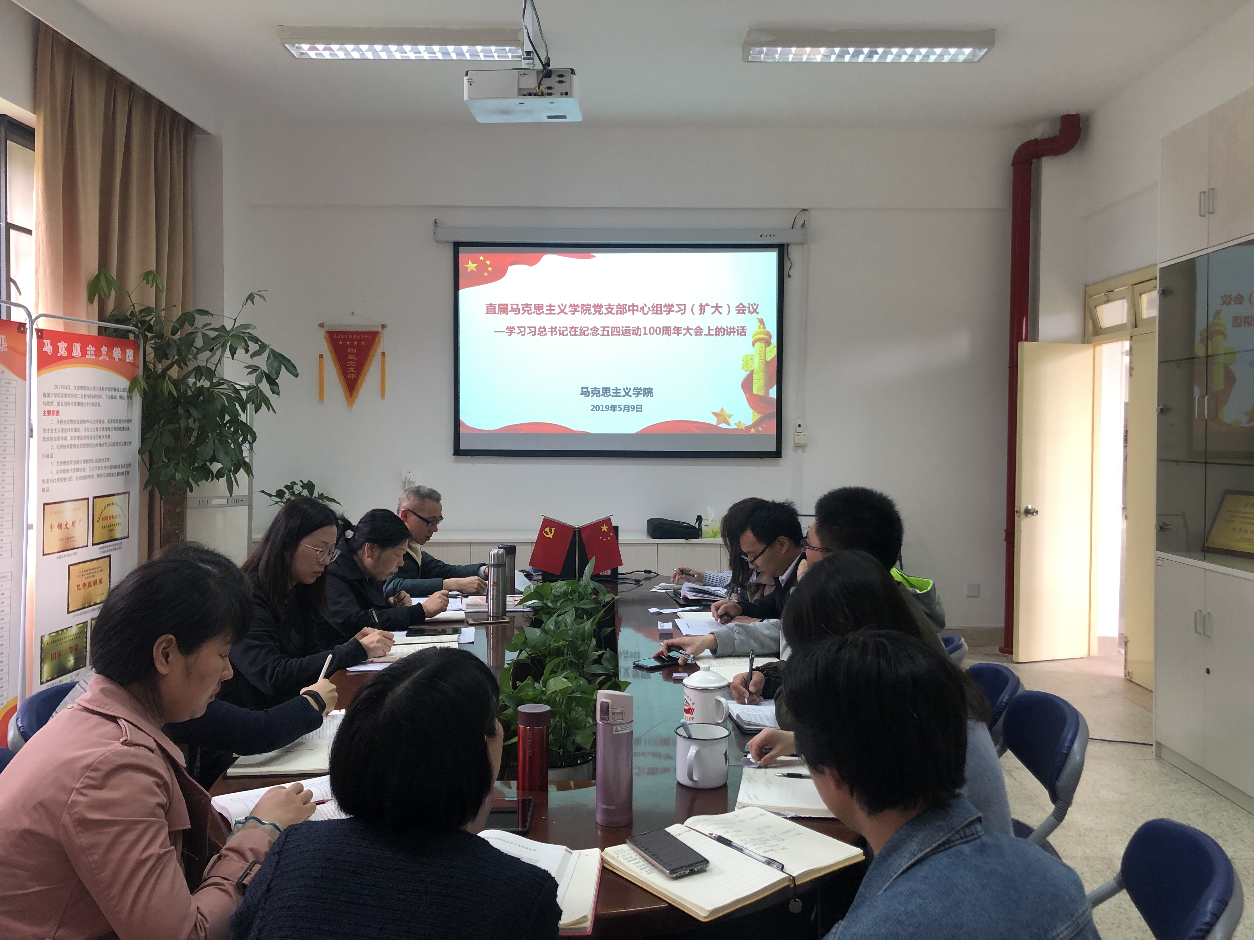 5月9日上午,直屬馬克思主義學(xué)院黨支部書記熊美蘭主持召開(kāi)黨支部中心組學(xué)習(xí)(擴(kuò)大)會(huì)議,學(xué)習(xí)《習(xí)近平總書記在紀(jì)念五四運(yùn)動(dòng)100周年大會(huì)上的重要講話》。