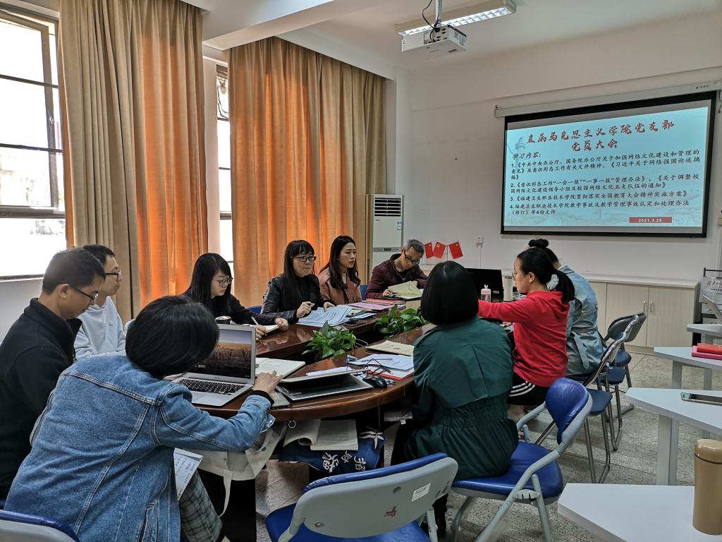 2021年3月25日上午,直屬馬克思主義學院黨支部在行政樓107召開第一季度意識形態工作會,本次會議由直屬馬克思主義學院黨支部書記熊美蘭主持,支部全體黨員參加了會議。