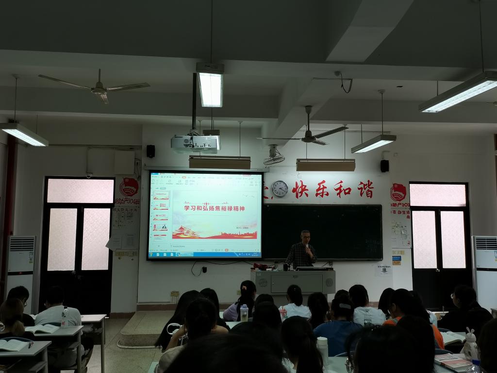 2021年5月17日下午,習近平新時代中國特色社會主義思想讀書社宣講團在胡濟林老師的帶領下,到教學樓210為20級健康管理302班舉行“學習和弘揚焦裕祿精神”的專題宣講。此次宣講人是莫慧蕓同學。