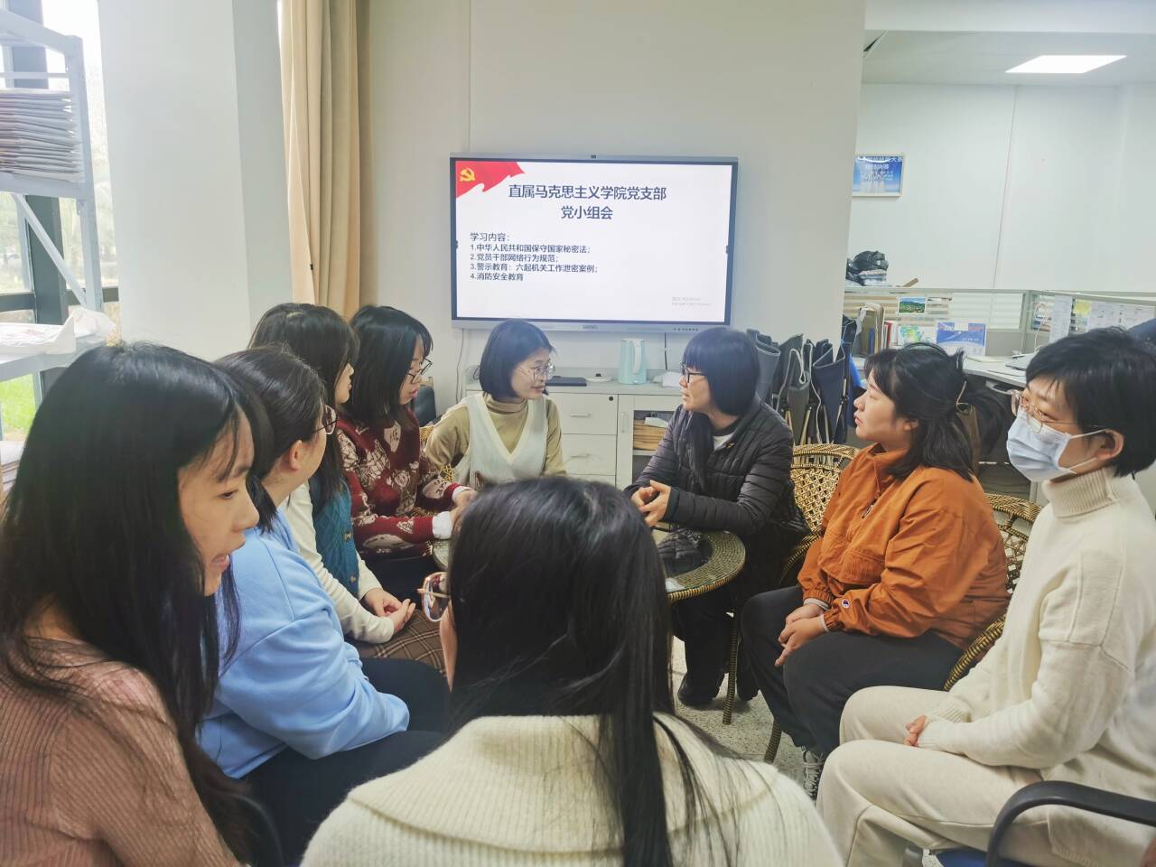 2024年3月7日,直屬馬克思主義學院黨支部第一、第二黨小組分別在行政樓101會議室、107會議室開展理論學習,由羅蕓同志、張天文同志主持。