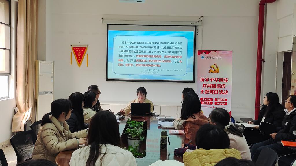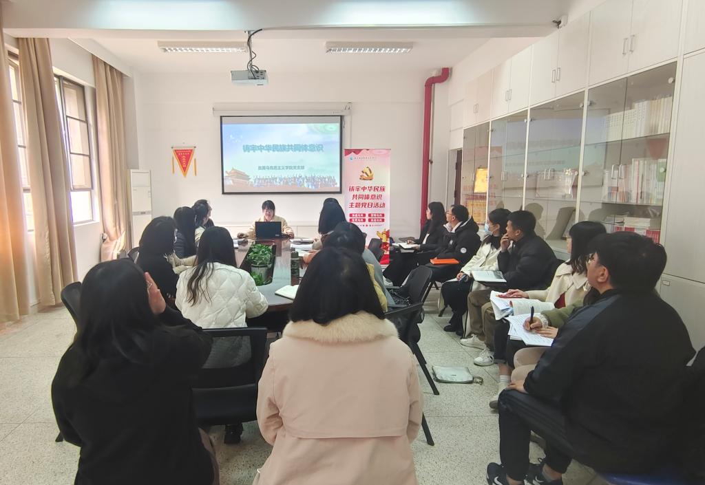 為進一步深入貫徹落實中央民族工作會議和習近平總書記在中央政治局第九次集體學習時的重要講話精神,進一步鑄牢中華民族共同體意識,2024年3月13日,直屬馬克思主義學院黨支部(以下簡稱“馬院支部”)在行政樓107開展”鑄牢中華民族共同體意識“主題黨日活動,活動由黨支部書記熊美蘭主持。