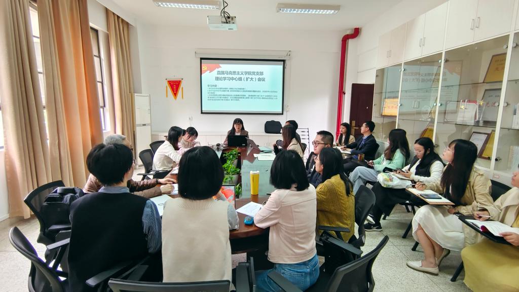 2024年4月11日上午,直屬馬克思主義學院黨支部在行政樓107開展理論學習中心組(擴大)會議。會議由黨支部書記熊美蘭主持。