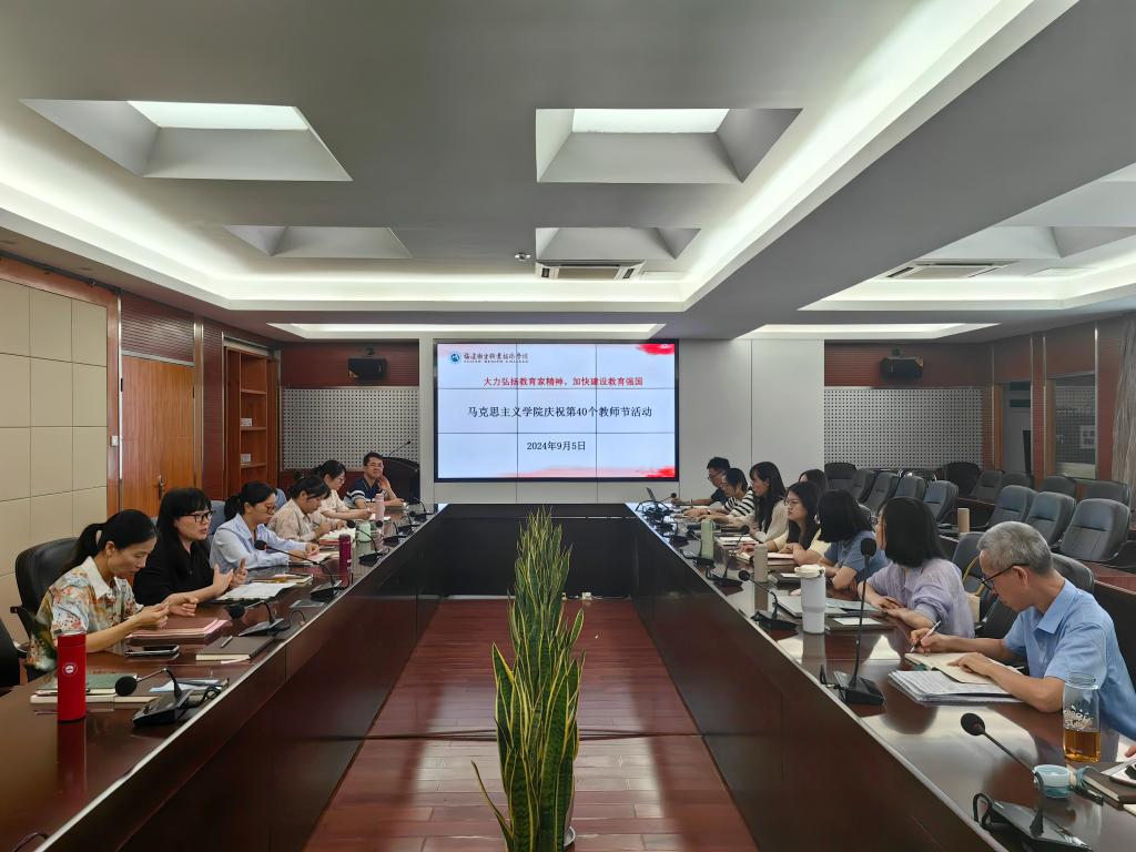 會上,馬克思主義學院組織慶祝第40個教師節活動,活動首先重點學習了習近平總書記重要文章《培養德智體美勞全面發展的社會主義建設者和接班人》,同時跟進學習近期習近平總書記的重要講話精神、《中共中央、國務院關于弘揚教育家精神加強新時代高素質專業化教師隊伍建設的意見》以及育人楷模先進事跡,而后,教師們集體觀看示范微黨課與教育警示片并進行了思政課教師宣誓,由賴文金同志領誓。