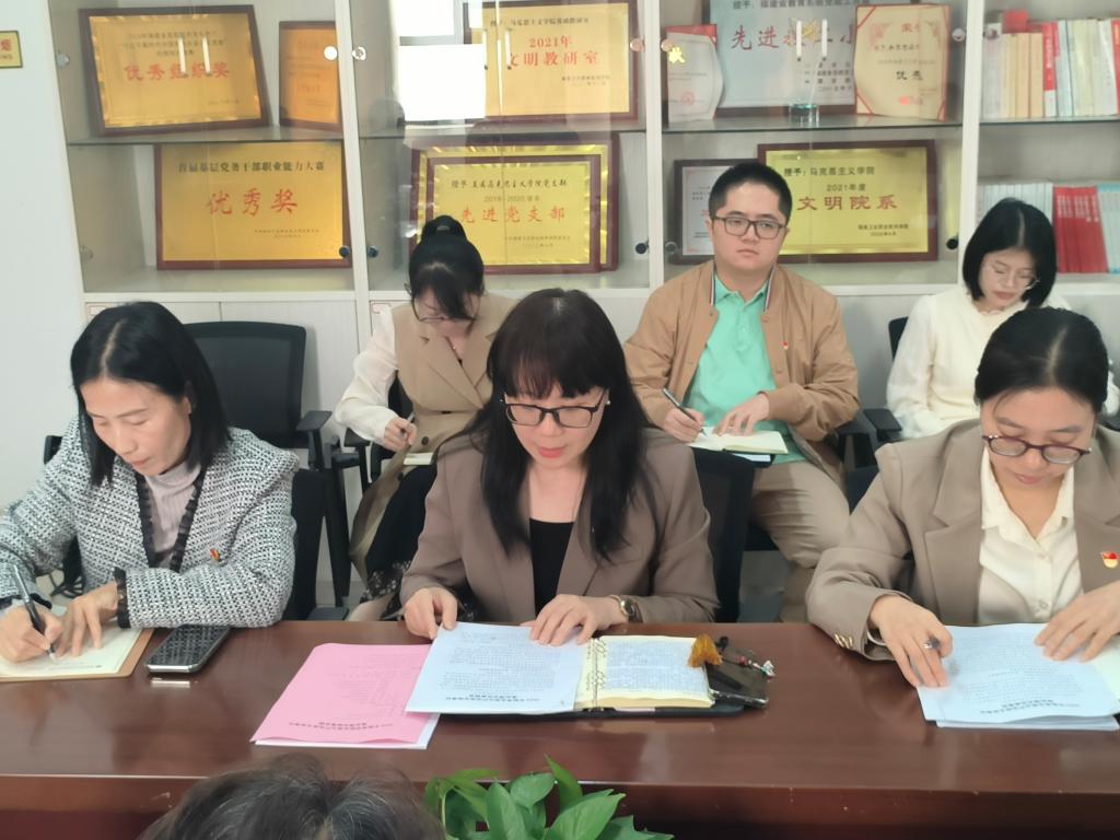 院黨總支書(shū)記熊美蘭從“壓緊壓實(shí)責(zé)任鏈條,著力扛起政治擔(dān)當(dāng)”“深學(xué)細(xì)悟理論精髓,著力筑牢思想支柱”“黨建領(lǐng)航融匯力量,著力深耕育人主業(yè)”三個(gè)方面對(duì)馬院全面從嚴(yán)治黨主體責(zé)任落實(shí)情況進(jìn)行了詳細(xì)匯報(bào),同時(shí)對(duì)黨建業(yè)務(wù)融合、關(guān)鍵課程建設(shè)、黨員隊(duì)伍建設(shè)等工作中存在的問(wèn)題與不足進(jìn)行了深入的剖析,并提出了下一步工作思路。