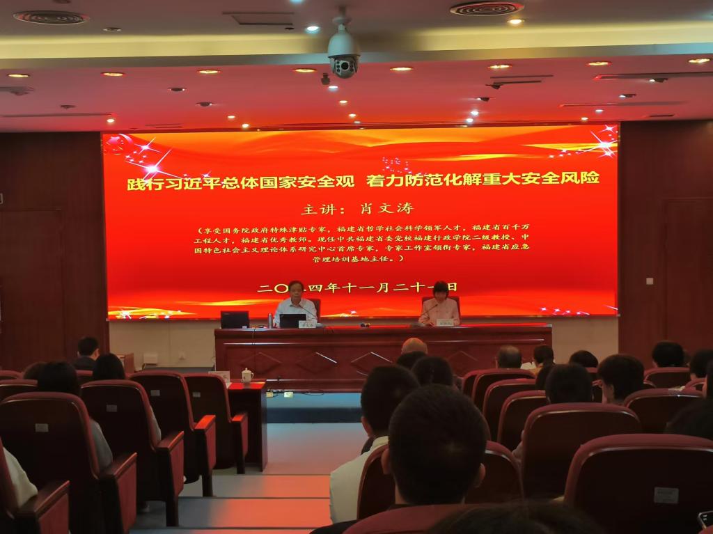 為深入學習貫徹黨的二十大、黨的二十屆三中全會精神,深刻理解和把握總體國家安全觀,2024年11月21日,馬克思主義學院第一黨支部在篤行樓四樓報告廳開展主題黨日活動,共同學習由國務院政府特殊津貼專家、福建省應急管理培訓基地主任、中共福建省委黨校福建行政學院肖文濤教授帶來的《踐行總體國家安全觀 著力防范化解重大安全風險》專題講座。