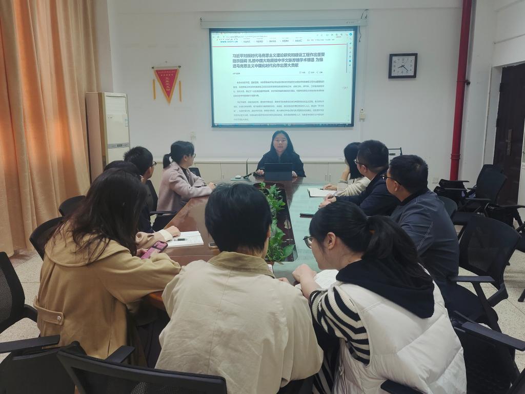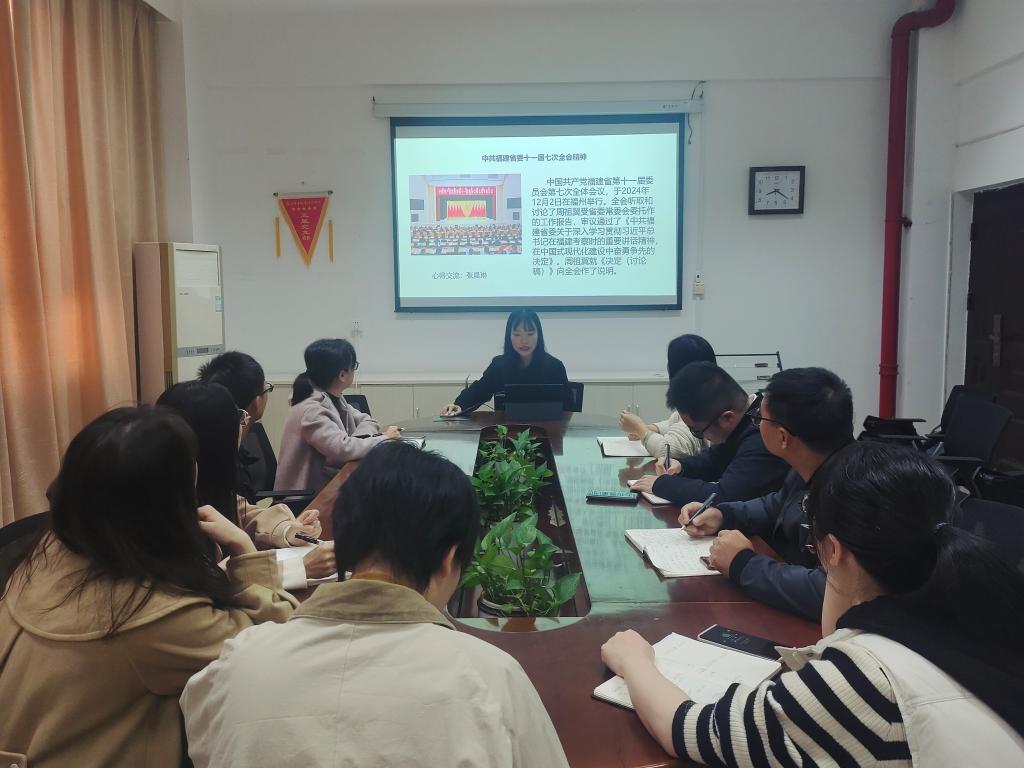 會上,由林美辰、張晨琳領學習近平對新時代馬克思主義理論研究和建設工程作出重要指示精神、習近平總書記在福建考察時發表的重要講話精神、中共福建省委十一屆七次全會精神等內容。