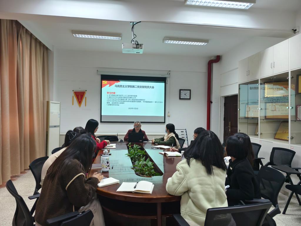 2025年1月2日,馬克思主義學院第二黨支部在厚德樓107馬克思主義學院會議室召開黨員大會,組織開展一系列重要理論學習。會議由黨支部書記胡濟林主持,黨支部全體黨員參加。