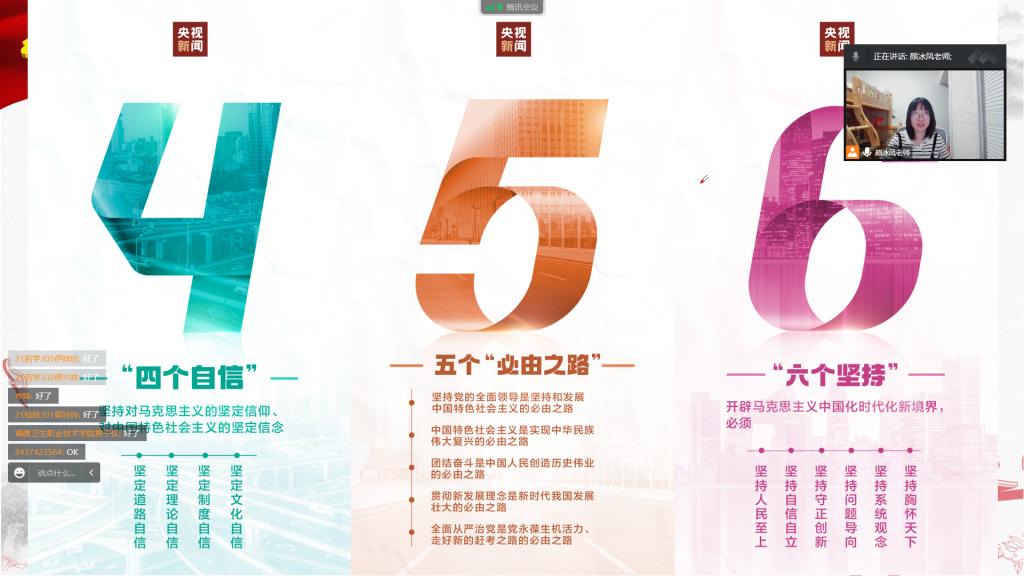 2022年11月9日,傳統節日研習社、21級新中國史選課學生代表齊聚云端,馬克思主義學院顏冰鳳老師開展了以“黨的二十大報告中的新觀點、新論斷、新思想”為主題的宣講。此次活動是馬克思主義學院學習貫徹黨的二十大精神系列宣講活動之一。