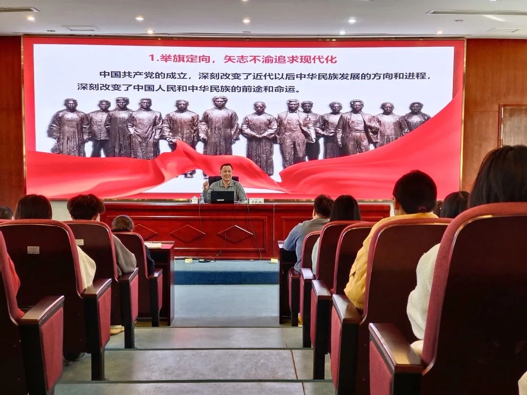曾武祈從歷史經驗、制度優勢、文明形態等維度出發,向黨員們深刻解讀了黨的二十大明確提出并系統闡述的中國式現代化。他指出,中國式現代化是一個內涵豐富、影響深遠的時代命題,是一項使命光榮、充滿挑戰的偉大事業。大道之行,壯闊無垠。生逢盛世,使命光榮。教師黨員應知時勢、明任務,篤定信心跟黨走,在全面建設社會主義現代化國家新征程新賽道上奮楫揚帆,賡續前行。