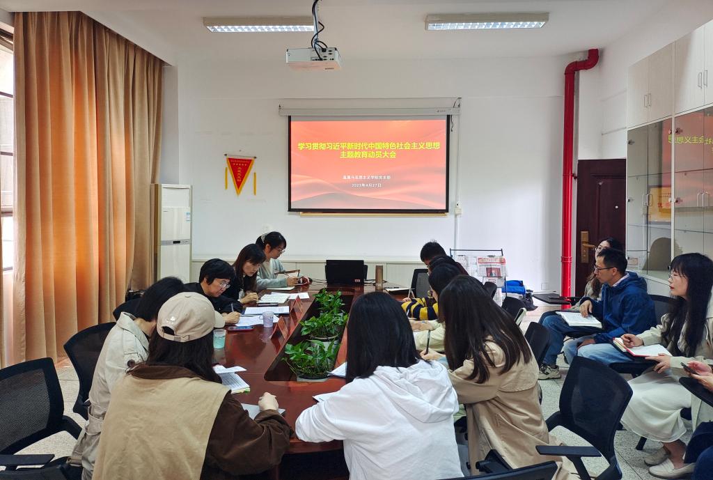 2023年4月27日,直屬馬克思主義學(xué)院黨支部在行政樓107室召開學(xué)習(xí)貫徹習(xí)近平新時(shí)代中國特色社會(huì)主義思想主題教育動(dòng)員大會(huì)。