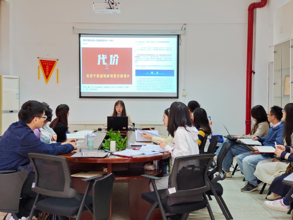會上,蔣楠同志領學《關于規范黨員干部網絡行為的意見》,顏冰鳳、龍慧同志結合思政工作崗位作了交流匯報,他們表示要把問題整改貫穿主題教育始終,堅持問題導向,以學生為中心,以實干推動思政課質量提升。全體黨員還觀看了警示片《代價》。