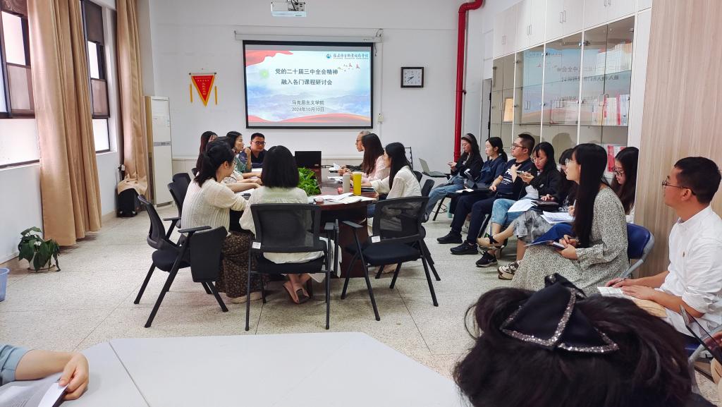 為深入學習貫徹黨的二十屆三中全會和全國教育大會精神,進一步推動思想政治理論課改革創新,2024年10月10日,馬克思主義學院在厚德樓107開展黨的二十屆三中全會、全國教育大會精神融入思政課交流研討會。