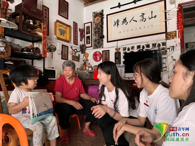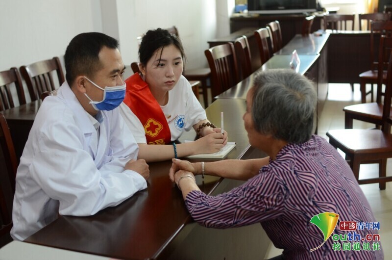 圖為“馬上逐夢”隊隊員對村民進(jìn)行訪談?wù){(diào)研。中國青年網(wǎng)通訊員 趙靖宇 攝