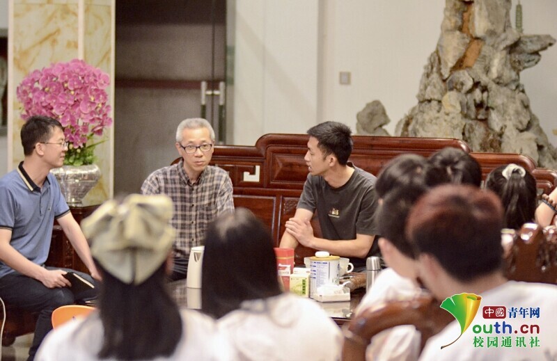 圖為“馬上逐夢”隊隊員們和中川村胡育虎書記開展座談會。中國青年網(wǎng)通訊員 趙靖宇 攝
