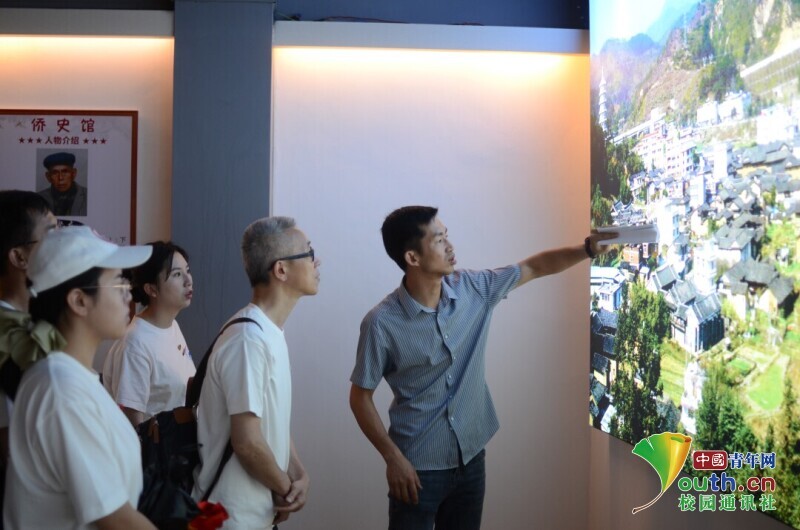 圖為中川村胡育虎書記帶領(lǐng)“馬上逐夢”隊隊員們參觀僑史館。中國青年網(wǎng)通訊員 趙靖宇 攝
