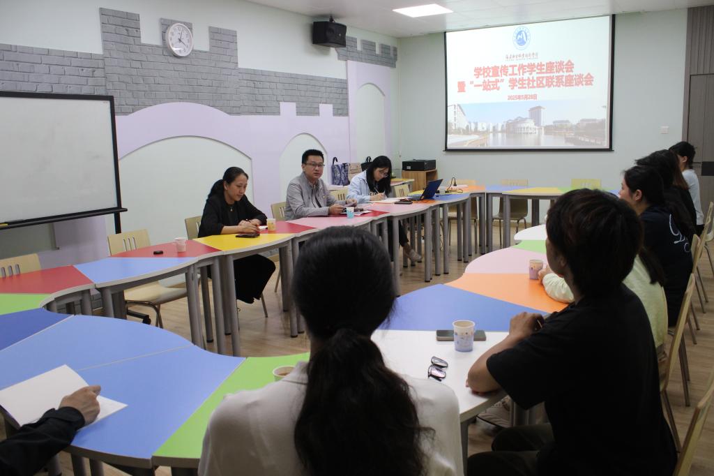 會上,宋維介紹學校宣傳部的主要工作職能及“一站式”社區黨建工作站的主要功能。參會學生代表們圍繞學校宣傳、文化建設以及學習生活中的實際問題等內容逐一發言,并對學校文化宣傳、后勤保障等工作提出寶貴建議。宣傳部工作人員從學校管理角度,耐心地為同學們解答疑惑,積極接受學生們寶貴的建議。現場氣氛和諧,展現了師生之間積極互動、共同成長的良好氛圍。