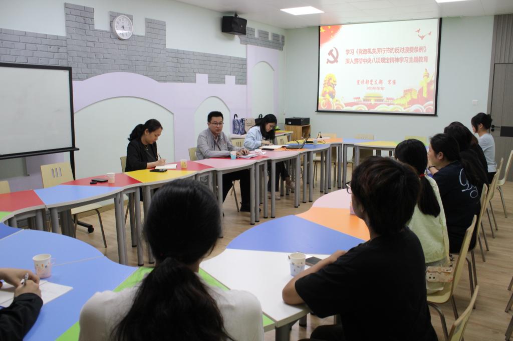 為扎實開展深入貫徹中央八項規定精神學習教育,宣傳部黨支部書記宋維講授主題黨課,介紹了《黨政機關厲行節約反對浪費條例》、學校校史和“健善仁”校園文化等內容,倡導學生積極踐行厲行節約反對浪費行為,進一步了解學習學校悠久校史和弘揚“健善仁”校園文化。
