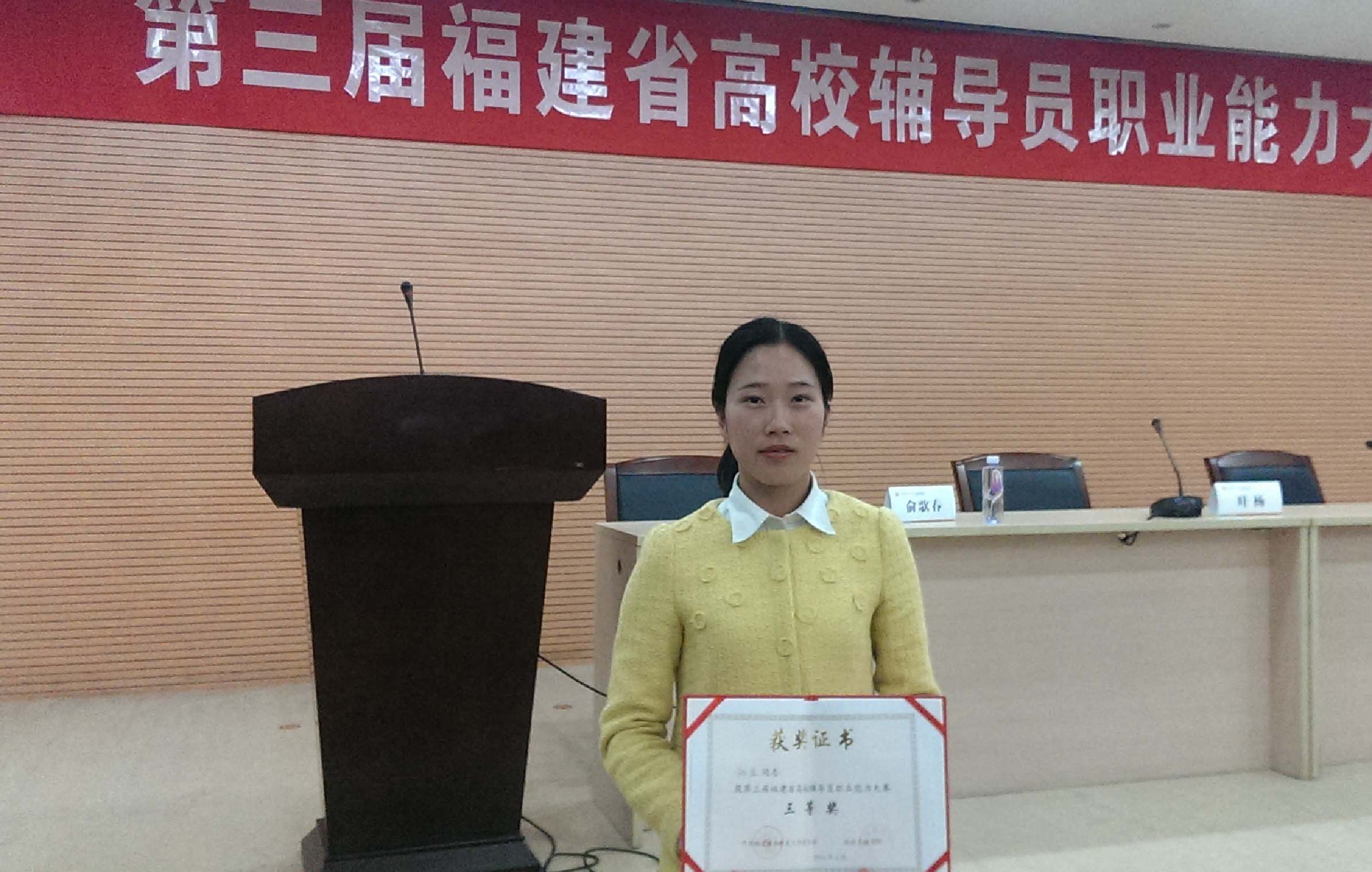 2014年4月2日~3日第三屆福建省高校輔導員職業能力大賽在福建師范大學旗山校區舉行。我院楊盈老師參賽,經過緊張激烈的復賽、決賽,喜獲三等獎。